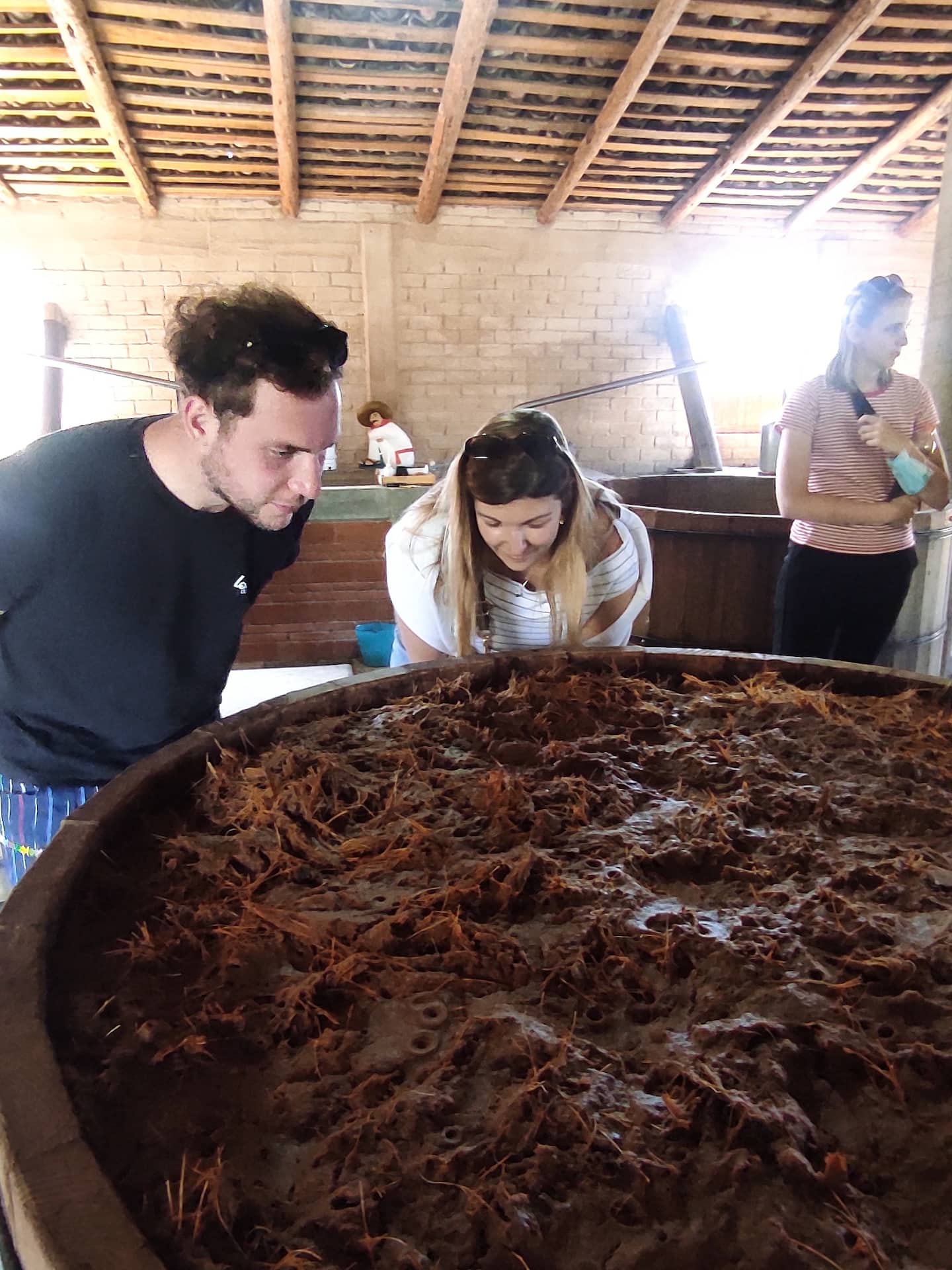 You can try cutting agave in the field, preparing the oven, getting the baked agave ready for macerating, crushing the agave piña by hand, and working with the fermentation vats. There’s no shortage of work on the palenque!